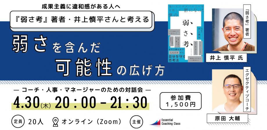 そこでこの度、大ヒットビジネス書『弱さ考』の著者 井上慎平 氏をゲストにお招きし、人の「可能性」について一緒に考える場を設けました。