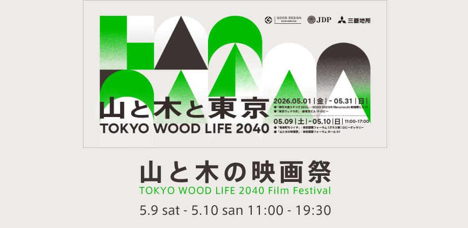 公益財団法人日本デザイン振興会が運営するギャラリーGOOD DESIGN Marunouchiでは、三菱地所株式会社の特別協賛により、3回目となる企画展「TOKYO WOOD LIFE 2040 山と木と東京」を2026年5月1日(金) より5月31日(日)まで開催します。本年も日本の山林と都市の関係に焦点をあて、建築とデザインの企画展、映画祭、マルシェ、フォーラム、エクスカーション、スタンプラリーなど多数のイベントを実施し、建築やものづくり、まちづくりやコミュニティデザインなど多岐にわたる領域から都市の生活を2040年までに「WOOD LIFE」に変える方策と最新の実践を発信します。