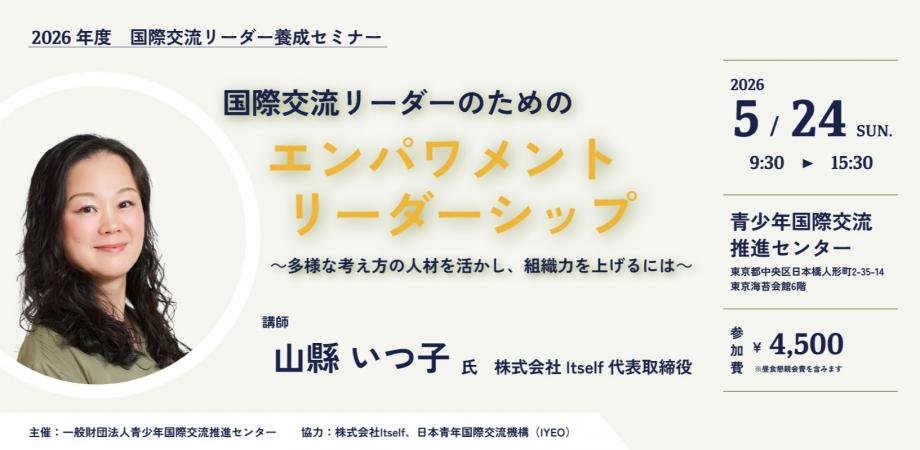 主催:一般財団法人青少年国際交流推進センター (CENTERYE)協力:株式会社 Itself、日本青年国際交流機構(IYEO)
