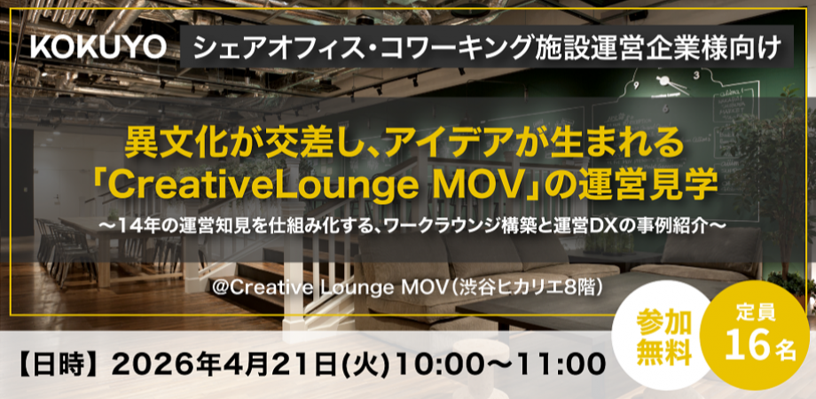 本イベントでは、コクヨが運営する「Creative Lounge MOV(渋谷ヒカリエ)」の現地見学に加え、14年の運営知見をもとに、施設運営のポイントやコミュニティ設計、運営DXの取り組みをご紹介します。