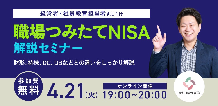 本セミナーでは従業員の資産形成を支援する福利厚生制度それぞれの違いなども踏まえたうえで、大和コネクト証券の職場つみたてNISAの魅力をしっかり解説させていただきます!