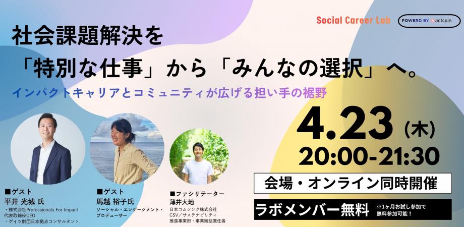 イベント詳細 ※本イベントはソーシャルキャリアラボ会員限定です。参加方法は下記「■参加方法」をご覧ください。