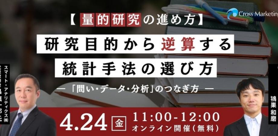 本セミナーでは、クロス・マーケティングが学術調査の現場で蓄積してきた調査設計の視点と、スマート・アナリティクス社が提供する統計学・分析手法の理論的枠組みを結びつけることで、研究目的からデータ取得、統計手法をどのように進めるべきかを明らかにします。