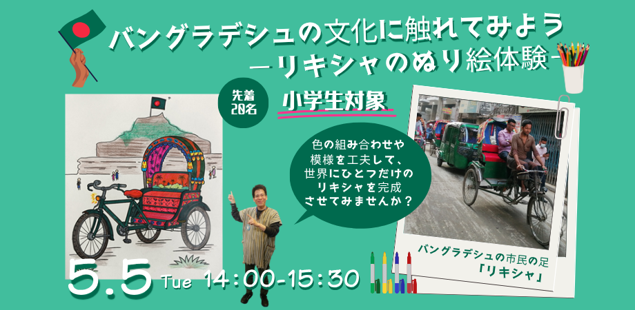 【イベント内容】・バングラデシュとリキシャのお話・塗り絵体験