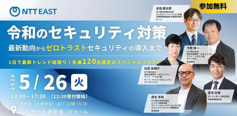 セミナー開催の背景そこで今回、NTT、NTT東日本グループの専門家による最新の脅威動向から実践的な対策、リアルなインシデント対応の現場知見までを「1日でまとめて学べる」無料セミナー を開催します。