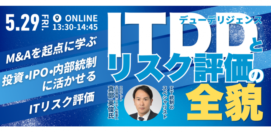 ■ セミナー概要M&AやIPOでは、ITの実態把握不足が買収後の追加投資や統合失敗、バリュエーション低下につながります。本セミナーでは、ITデューデリジェンス(ITDD)の実務をベースに、対象企業のIT環境をどのように評価し、どのリスクが意思決定に影響するのかを解説します。内部統制・IT統制も“チェック項目”としてではなく、投資判断にどう効くかという観点で整理します。