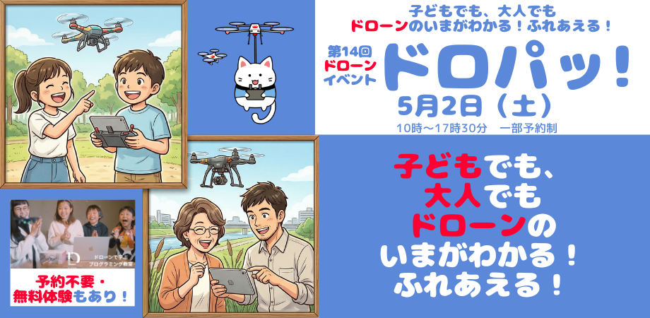 未来を感じさせる「空のモビリティ」を体験できるドローンイベント「ドロパッ!」が、5月2日(土)に開催されます。