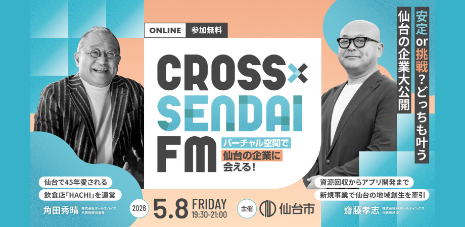 CROSS SENDAI FMは、仙台の企業や働き方のリアルを、オンラインで気軽に知ることができるトークイベント。