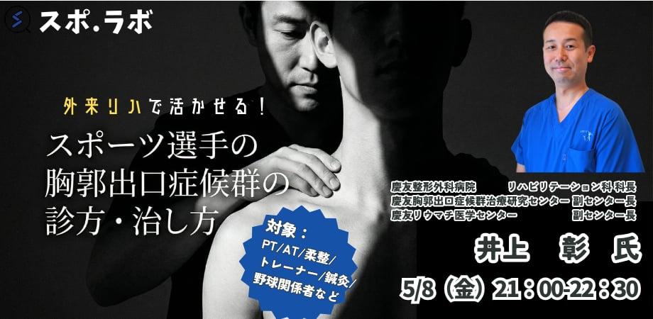 イベント詳細 外来リハで活かせる!スポーツ選手の胸郭出口症候群の診方・治し方 ▶まずこのポイントを押さえよう!◀【講師】井上彰氏慶友整形外科病院 リハビリテーション科 科長慶友胸郭出口症候群治療研究センター 副センター長慶友リウマチ医学センター 副センター長【ファシリテーター】河上淳一氏【日時】5月8日(金)21時~1時間on-line講演+質疑応答(2週間限定の見逃し配信)【参加費】✅3300円(当日参加/2週間限定の見逃し配信あり)■ こんな方におすすめTOSの診断や評価に自信が持てない方他疾患との鑑別に悩んでいる方再発を繰り返す症例に困っている方スポーツ選手のパフォーマンス低下の原因を見極めたい方外来リハの臨床力を底上げしたい方👇こちらもチェック<アンコール配信>投球動作で大切な肩90度外転外旋/内旋について詳しくなれるセミナーhttps://peatix.com/event/4970349【内容の詳細】外来リハビリテーションにおいて、胸郭出口症候群(Thoracic Outlet Syndrome : TOS)は「気づかれにくい疾患」の一つです。特にスポーツ選手では、パフォーマンス低下や違和感として現れることが多く、明確な疼痛やしびれが前面に出ないケースも少なくありません。その結果、「原因がはっきりしない不調」として扱われ、適切な介入のタイミングを逃してしまうこともあります。