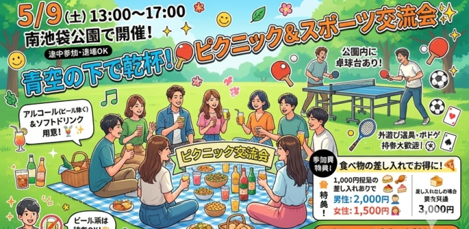 「5月の風が気持ちいい芝生の上で、最高の休日を過ごしませんか?☀️」 都会の真ん中にあるオアシス「南池袋公園」で、ピクニック&アクティブ交流会を開催します!✨ 「ただ座って話すだ... powered by Peatix : More than a ticket.