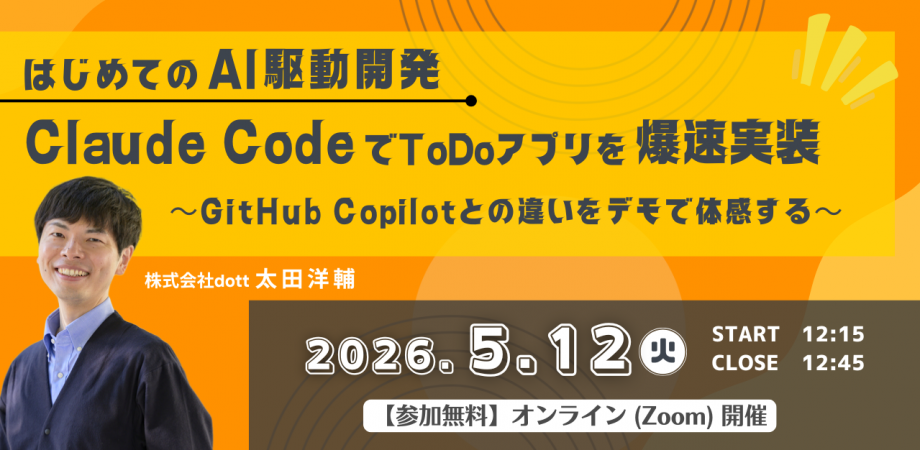 生成AIの進化により、ソフトウェア開発は大きな変革期を迎えています。特にClaude CodeをはじめとしたコーディングアシスタントAIは、コードやテスト生成を支援し、ITエンジニアの開発スタイルを大きく変えつつあります。本セミナーでは、AI駆動開発の考え方を整理したうえで、Anthropic社の Claude Code を用い、シンプルなToDoアプリを実装するデモを行います。要件定義から実装・テストまでを、AIとどのように対話しながら進めていくのかを、実際の画面を見ながら解説します。すでにGitHub CopilotによるAIアシスタントを使ったことがある方にとっては、「GitHub Copilotとは何が違うのか」「Claude Codeはどんな開発スタイルに向いているのか」を具体的に理解できる内容です。開発経験はあるけれど、Claude Codeは未体験の方に向け、AI駆動開発のリアルなイメージをお届けします。