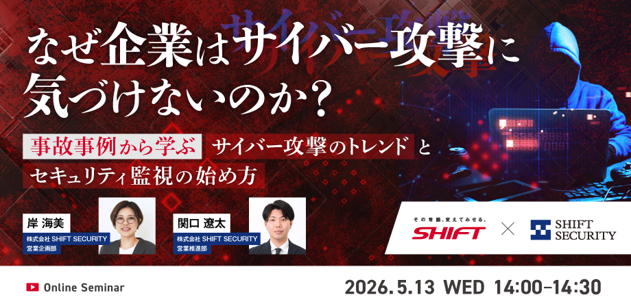 サイバー攻撃の高度化により、24時間365日の監視体制の重要性が高まっています。しかし「何から始めればよいかわからない」「専任人材がいない」といった理由から、SOCの導入に踏み切れない企業も少なくありません。本セミナーでは、実際の事故事例を通して最近のサイバー攻撃のトレンドを解説します。その上で、SOCをアウトソースするメリットを整理し、スモールスタートで無理なく始める現実的な方法をご紹介します。すでにセキュリティ製品を導入されている企業様にとっても、監視体制の見直しや強化のヒントとしてご活用いただける内容です。