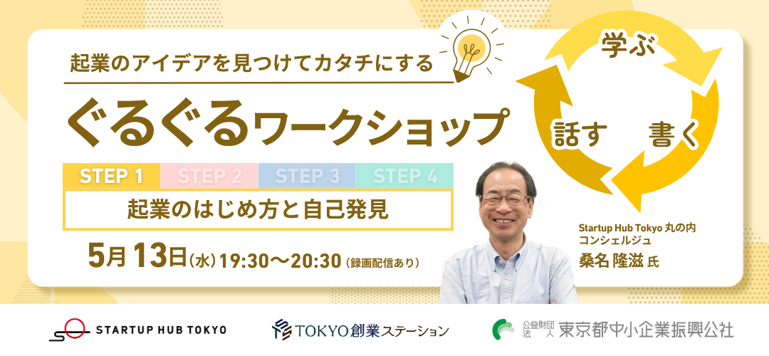 起業のアイデアを見つけてカタチにするぐるぐるワークショップ「STEP1:起業のはじめ方と自己発見」<録画配信あり>