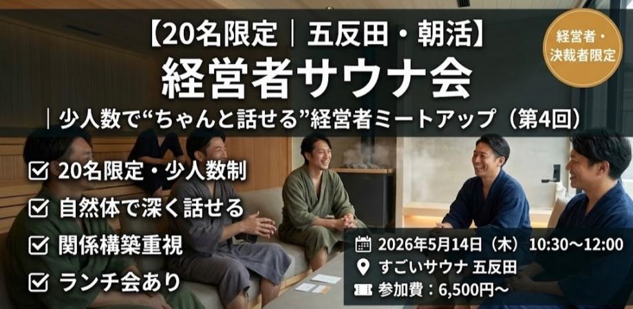 イベント詳細 【20名限定|五反田・朝活】経営者サウナ会|少人数で“ちゃんと話せる”経営者ミートアップ(第4回)