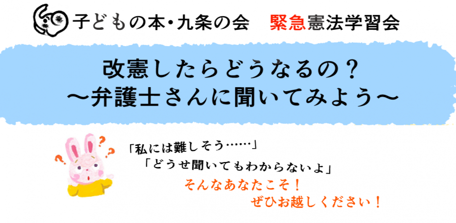 イベント詳細 先の衆議院議員選挙の結果、「憲法改正」のハードルはぐっと下がりました。改憲勢力はどのような憲法(=国の形)を目ざしているのでしょう。基礎から学びたいと思います。なんとなく不安でもやもやしている方、お気軽にご参加下さい。
