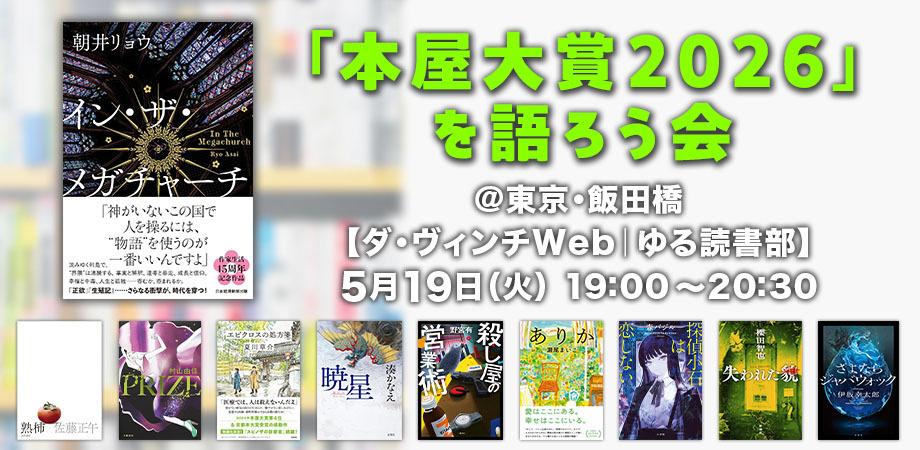 ■「本屋大賞2026」ノミネート作品 最終順位1位『イン・ザ・メガチャーチ』(朝井リョウ/日経BP 日本経済新聞出版)2位『熟柿』(佐藤正午/KADOKAWA)3位『PRIZEープライズー』(村山由佳/文藝春秋)4位『エピクロスの処方箋』(夏川草介/水鈴社)5位『暁星』(湊かなえ/双葉社)6位『殺し屋の営業術』(野宮有/講談社)7位『ありか』(瀬尾まいこ/水鈴社)8位『探偵小石は恋しない』(森バジル/小学館)9位『失われた貌』(櫻田智也/新潮社)10位『さよならジャバウォック』(伊坂幸太郎/双葉社)