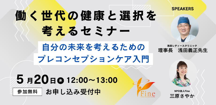後半は、NPO法人Fine 三原さやかが、不妊治療の経験者として、また現在は産業保健領域で働く立場から、プレコンセプションケアの知識を日々の働き方や長期的なライフプランとどう繋げていくかのヒントをお話しします。