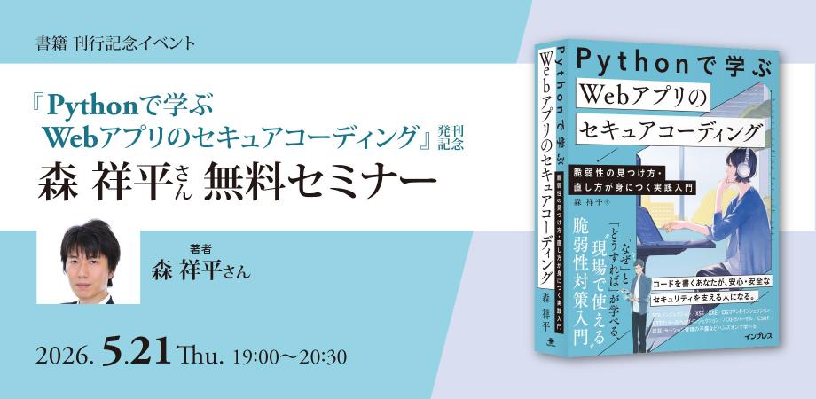 本イベントでは、GoogleやContrast Securityでの実務経験を持ち、自ら「最初はセキュリティもOWASP TOP 10すら知らなかった」と語る著者の森祥平氏が、2025年11月発売の新刊をベースに、実際のハッキングデモ実演、そして「最初から安全なコードを書く」ためのセキュアコーディングの極意を徹底解説します。