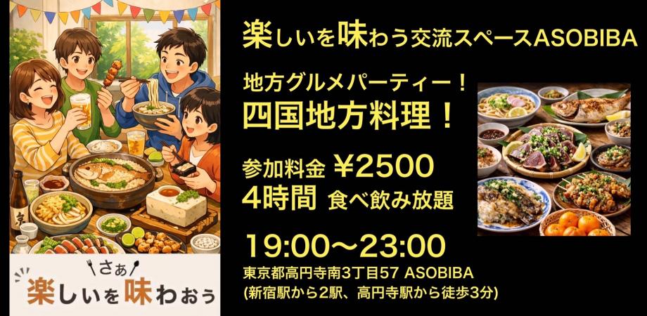 【4時間食べ飲み放題】地方グルメパーティー!四国地方編(交流スペースASOBIBAで食事と交流を楽しもう)