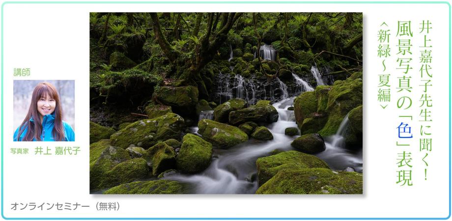 今回のセミナーは、井上嘉代子さんによる「風景写真の『色』表現」の第二弾、<新緑~夏編>です。