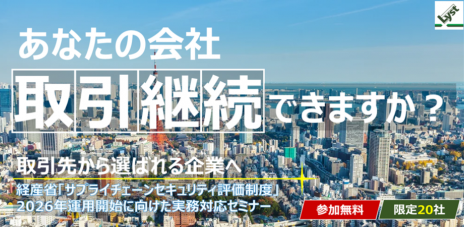 ◆セミナー内容2026年10月以降の運用開始に向け、経済産業省が推進する「サプライチェーン強化に向けたセキュリティ対策評価制度」がいよいよ本格始動します。昨今、委託先を起点としたランサムウェア被害や情報漏洩が多発しており 、もはや自社のみの対策では事業継続を担保できない時代となりました。