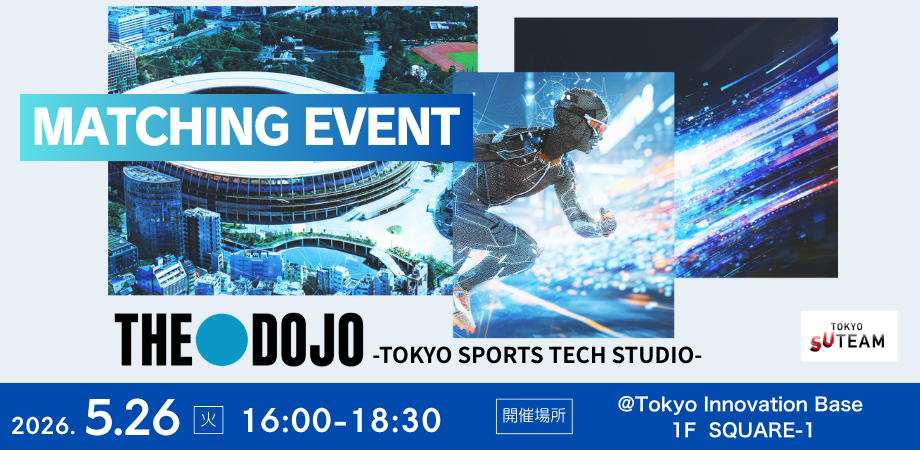 イベント詳細 【TOKYO SUTEAM】THE DOJO – TOKYO SPORTS TECH STUDIO マッチングイベントスポーツの未来を、東京から。採択スタートアップ5社の挑戦と、次のパートナーとの出会いの場へ。
