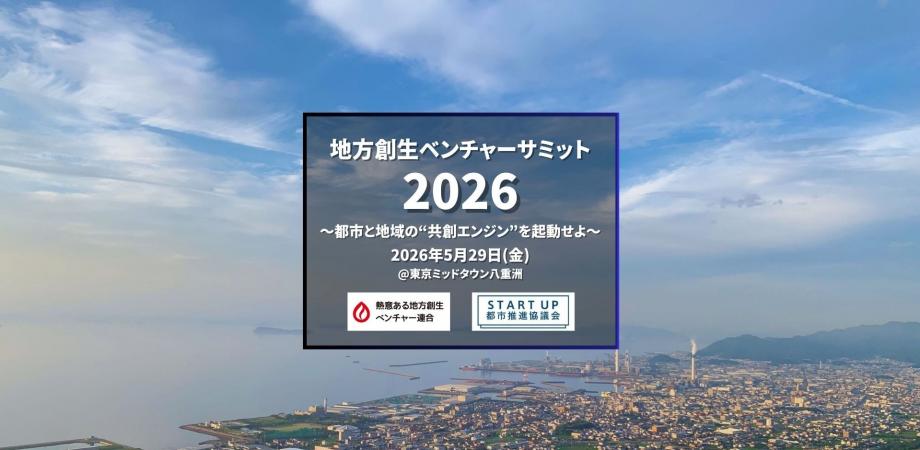 名 称:地方創生ベンチャーサミット2026 ~都市と地域の“共創エンジン”を起動せよ~ 主 催:(一社)熱意ある地方創生ベンチャー連合、スタートアップ都市推進協議会 会 場:POTLUCK YAESU(東京都中央区八重洲2丁目2-1 東京ミッドタウン八重洲 4F) 日 程:2026年5月29日(金)10時00分~19時30分(9:30開場予定) 参 加: ①一般(5,000円/人) 2026/4/30までにお申し込みの場合は早割3,000円でのチケット購入が可能です。 ②学生(2,000円/人) 当日、有効期限内の学生証または証明ができるものをご持参ください。 ③個人スポンサー(30,000円/人) 当日、入会の有無に関わらず前方席及び交流会へのご案内をさせていただきます。 本イベントの趣旨にご賛同・ご支援いただける方からのお申し込みをお待ちしております。 ④熱意ある地方創生ベンチャー連合会員企業(無料) 2026/5/1時点で入会済(https://netsui.or.jp/member/)、かつ会費支払に遅滞のない企業様。(1社あたりの参加人数制限はございません) ⑤国・自治体職員(無料) 当日、国・自治体職員であることを証明できるものをご持参ください。 ※オンライン配信はございません。 ※途中入退出自由のイベントとなっております。 ※報道関係者は前日17時までにお申込みのあった方のみご参加可能です。 ※当日の入場に際し、手荷物検査を実施させていただく場合がございます。あらかじめご了承ください。
