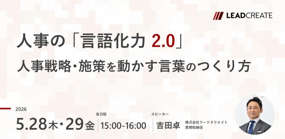 本ウェビナーでは、人事・人材開発部門として関係者へ「解像度の高いメッセージを届けるための言語化力」を高めていくためのポイントを解説します。ビッグワード、マジックワード、バズワードの乱発・乱用に陥ってしまっている経営層、人事部門の皆さまには必見のコンテンツをご用意してお待ちしています。