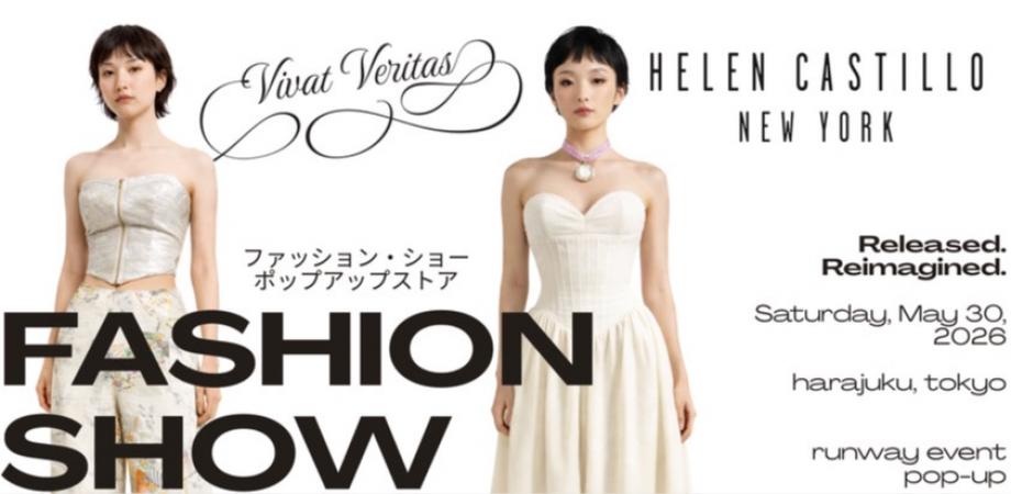 ABOUT THE EVENT / イベントについてOn May 30, 2026, Harajuku will be the setting for a rare creative encounter: Helen Castillo, three-time finalist on the hit American television series Project Runway, makes her Tokyo debut alongside Vivat Veritas, Tokyo’s sustainable kimono upcycling label.2026年5月30日、原宿にてスペシャルなイベントが実現します。全米で人気のファッション番組「Project Runway」に3度ファイナリストとして出場したニューヨークのデザイナー、Helen Castilloが東京に初登場。東京発のサステナブルファッションブランド、Vivat Veritasとのコラボレーションです。