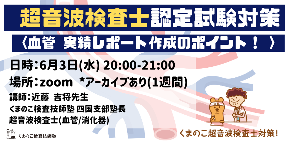くまのこ検査技師塾 主催! 超音波検査士認定試験対策【血管領域】セミナー開講! 最初の難関である実績レポート作成のポイントを、経験豊富な講師が解説します! 超音波検査士を目指す方は... powered by Peatix : More than a ticket.