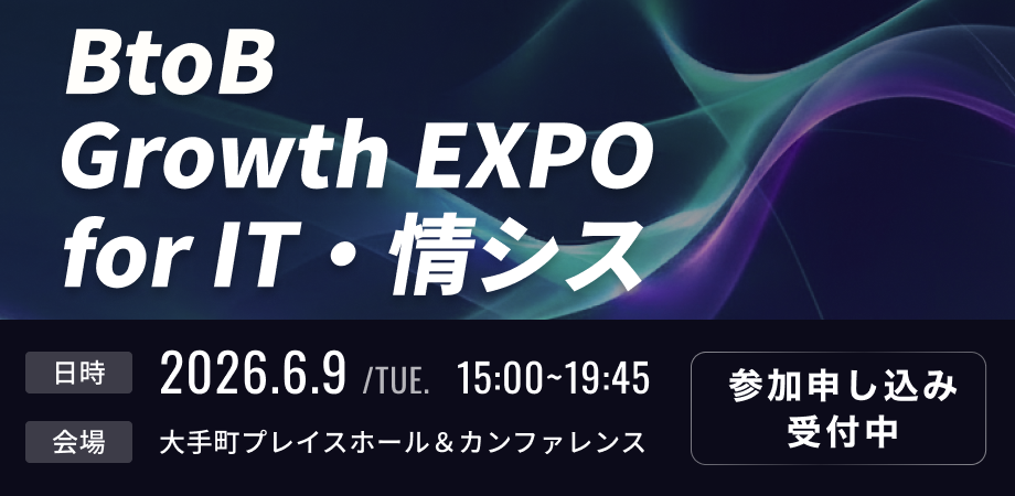 イベント詳細 前回1000名超の方にご応募いただいた「BtoB Growth EXPO」が、IT・情シスをテーマに6月9日(火)に開催されることが決定いたしました!ここでしか聞くことができない貴重なセッションも多数予定しておりますので、ぜひご参加をお待ちしております。
