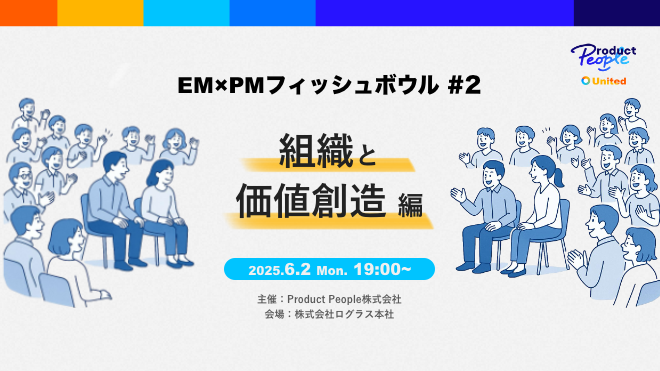 # 🍣イベント趣旨 「PMフィッシュボウル」は“プロダクトな人たち”が直面する、単一解のない「〇〇ってむずくない?みんなどうしてる?」に対して、登壇者・参加者の事例や集合知を結集させ、実践的なインサイトを得るための場を作るべく企画された、Product People株式会社主催のイベントシリーズです。 「整理した知見を数名から提供する場」というよりも「登壇者・参加者が共感し合い、リアルな事例や経験、考えをたくさん交換しあう場」にできれば思っています。 前回はPMのみで開催しましたが、今回はEMも交えて、「組織と価値創造 編」としての開催です。 PMが担う「何をつ...