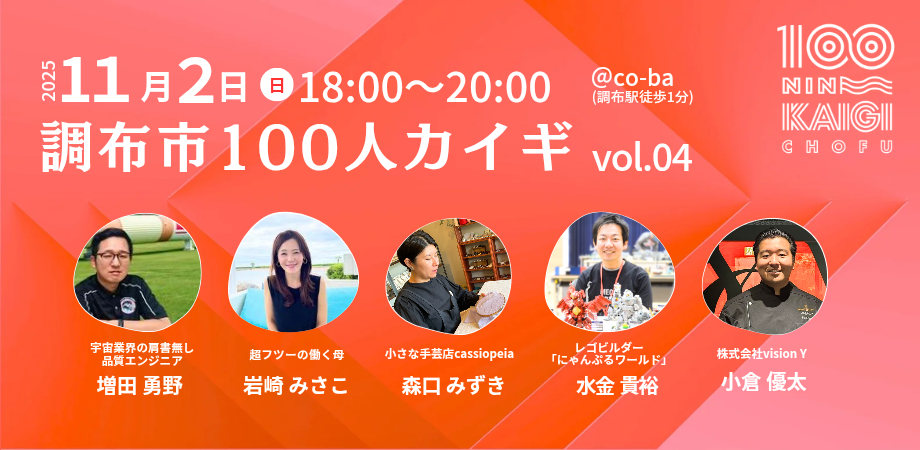 街に住む、働く100人を起点に人をつなげる「100人カイギ」。 港区から始まり、各地に広がりつつある100人カイギが2025年8月からついに調布市でも始動しました!※... powered by Peatix : More than a ticket.