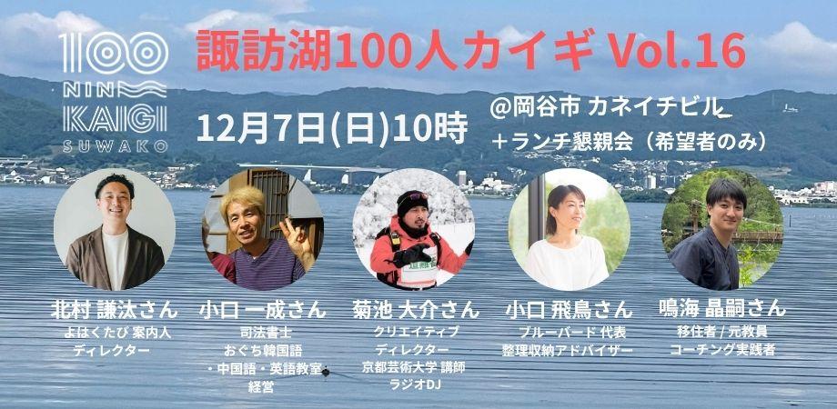 【諏訪湖100人カイギ Vol.16】100人カイギは、ゲストのひとり10分間の自己紹介(人生ストーリーや、今活動していることへの”想い”)を聞いて、人と人... powered by Peatix : More than a ticket.