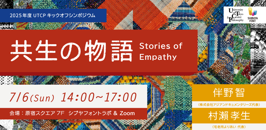 東京大学 UTCP x シブヤフォント共同主催 「2025年度UTCPキックオフシンポジウム 共生の物語 - Stories of Empathy」去年に引き続き、今年も共生のため... powered by Peatix : More than a ticket.