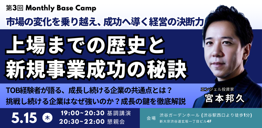 SURVIVAL SALONの第3回の月例会になります。成功する新規事業のセオリーとIPO(上場)のリアルを、実体験をもとに語る特別講演!エンジェル投資家・宮本邦久氏が、創業から上... powered by Peatix : More than a ticket.