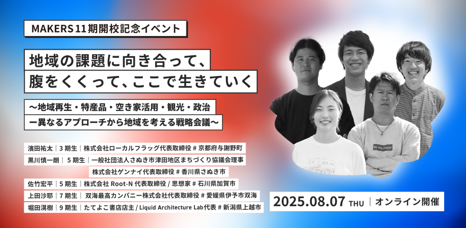 地域の課題に向き合って、腹をくくって、ここで生きていく〜地域再生・特産品・空き家活用・観光・政治ー異なるアプローチから地域を考える戦略会議〜【MAKERS第11期開校記念イベント ... powered by Peatix : More than a ticket.