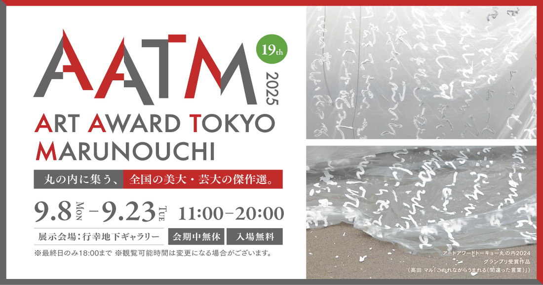 若手アーティストの発掘・育成を目的とした現代美術の展覧会。19回目の開催を迎える今年は、全国18校からノミネートされた146点の作品より、厳正な審査を通過した20作品が展示されます。次世代を担うアーティスト達の清々しく斬新な感性が一堂に会する丸の内を、是非この機会にお楽しみください。9月8日(月)のイベント初日には、最終審査会と表彰式を執り行い、グランプリをはじめ、各審査員賞など全12賞の受賞作家