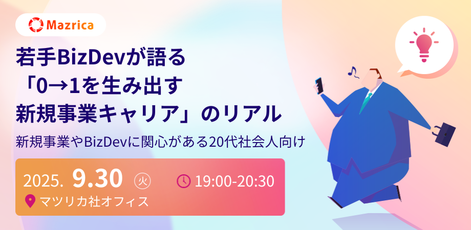 "価値を創造する人材へ"——新規事業開発に挑戦し、非連続な成長をリードする経験を積みたい方へ。 株式会社マツリカは、企業の収益(売上)を担う営業・マーケティングといったセクションに対し、AIとデータの価値をフル活用した様々なプロダクトを開発・提供しています。 ・次世代型営業DXプラットフォーム 「Mazrica」 ・日本初のデジタルセールスルーム 「DealPods」 ・【2025年 提供開始】マーケティングAIエージェント「DealAgent」 現在も複数の新規事業を同時並行で推進しており、AI Revenue Tech Company として既存事業で培ったナレッジ・資産を...