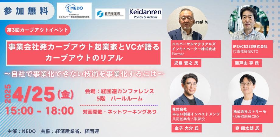 【参加無料】【対面開催】【ネットワーキングあり】 事業会社発カーブアウト起業家とVCが語るカーブアウトのリアル~自社で事業化できない技術を事業化するには~ <このよう... powered by Peatix : More than a ticket.