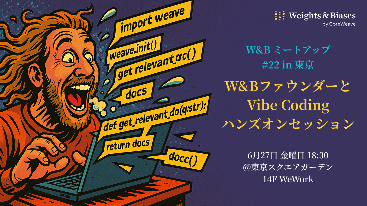 # イベント概要 今回のミートアップでは、Weights & Biases の創業メンバーであるChris Van Peltが来日し、Vibe Codingのハンズオンセッションを開催します! @karpathyによって作られたVibe Codingとは、AIを活用し、自然言語で要件を提示することで、AIがコードを生成し、開発者がそのコードを確認・修正しながらアプリケーションを開発していく新しい開発手法であり、「“ノリ” (vibes) に完全に任せ、爆発的なひらめきを受け入れ、コードの存在すら忘れてしまう」とも言われています。 こちらのセッションでは、Cursor、Claude ...