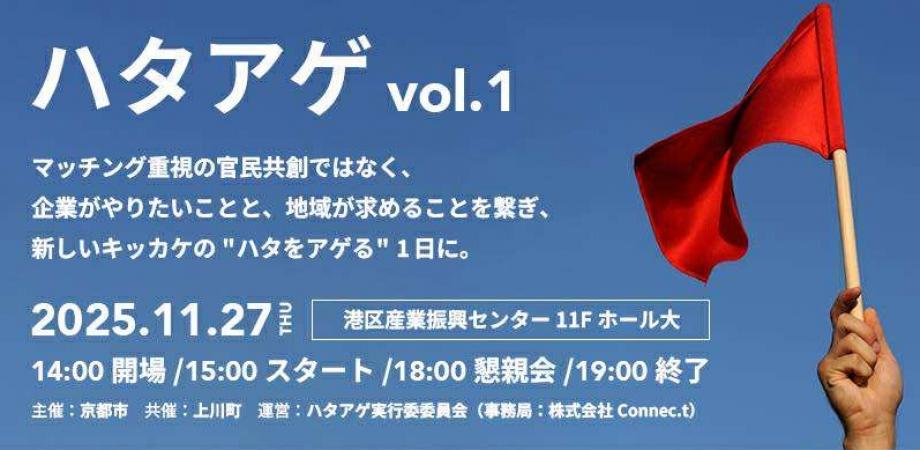 【京都市主催】企業と地域を結ぶ新しい事業創造イベント「ハタアゲ」 vol.1 官民共創のその先へ。マッチング重視の官民共創ではなく、企業がやりたいことと、地域が求めることを繋ぎ、新... powered by Peatix : More than a ticket.
