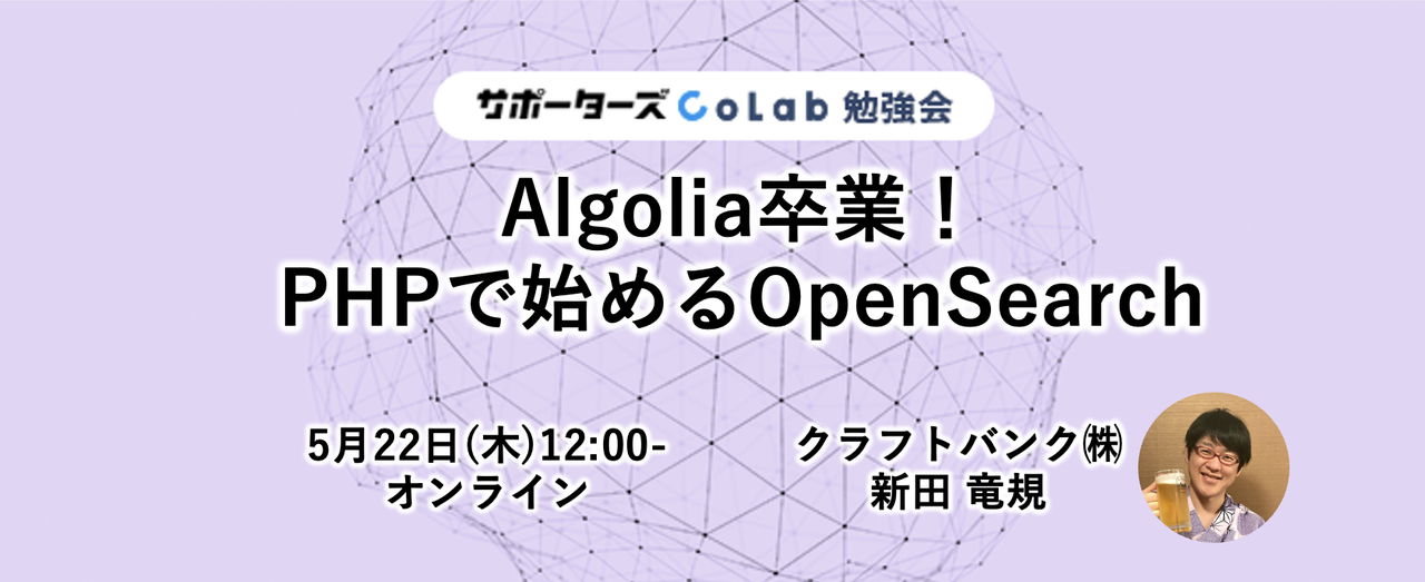 ## 📍 イベント概要 Algoliaは、その高速性や簡単な導入プロセス、使いやすい管理画面で、多くのエンジニアに支持されている全文検索エンジンです。 一方で、運用規模が拡大するにつれて、コスト増加や柔軟なカスタマイズが難しいといった課題も浮き彫りになりました。 本勉強会ではPHPで構築された既存システムにおいて、AlgoliaからOpenSearchへ検索機能を移行した事例についてご紹介します。 移行の理由や具体的な手順、移行時に直面したトラブルとその解決策について詳しく解説します。同様の課題を持つ開発者のヒントになることを目指します。 ## 🕖 アジェンダ * なぜA...