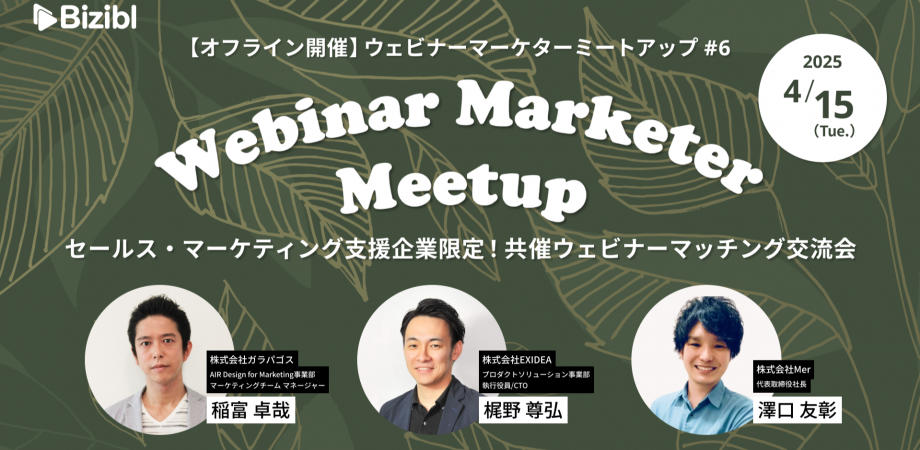 ■イベント概要 ウェビナー担当者同士が直接交流できる Webinar Marketer Meetup、第6回の開催が決定!今回の「セールス・マーケティング支援企業限定!共... powered by Peatix : More than a ticket.