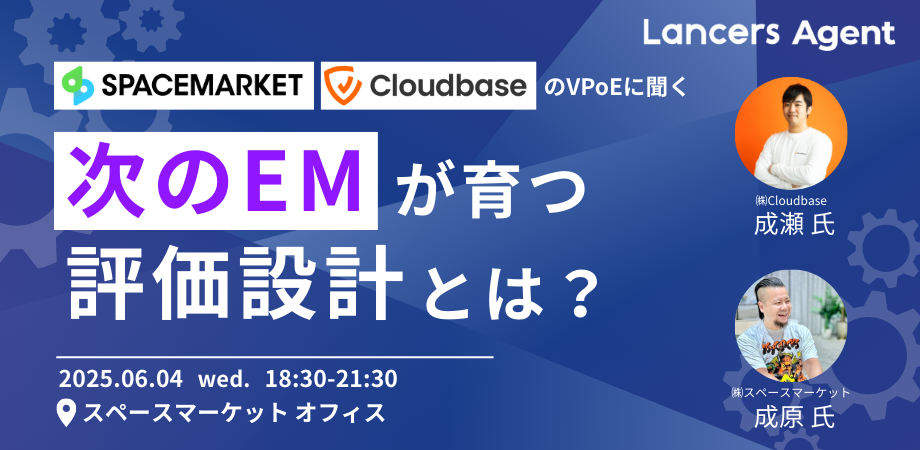# ✍️ イベント概要 「自分の判断や責任が集中しすぎて、そろそろ限界……」 「EMポジションを作ったものの、安心して任せられる状態にならない……」 そんな風に、次のEMを育てたいのに、育てきれず任せきれないという悩みを抱えていませんか? 本イベントでは、スタートアップの成長フェーズでEMの育成と権限移譲に向き合っている2名のVPoEが登壇。 EMに求める役割や期待をどう言語化するか? 成長の段階や判断基準を、どう設計・共有していくのか? 評価設計が、どう“任せられる状態”をつくっていくのか? 評価制度や目標設定は、人事制度の話だけではありません。 マネージャ...
