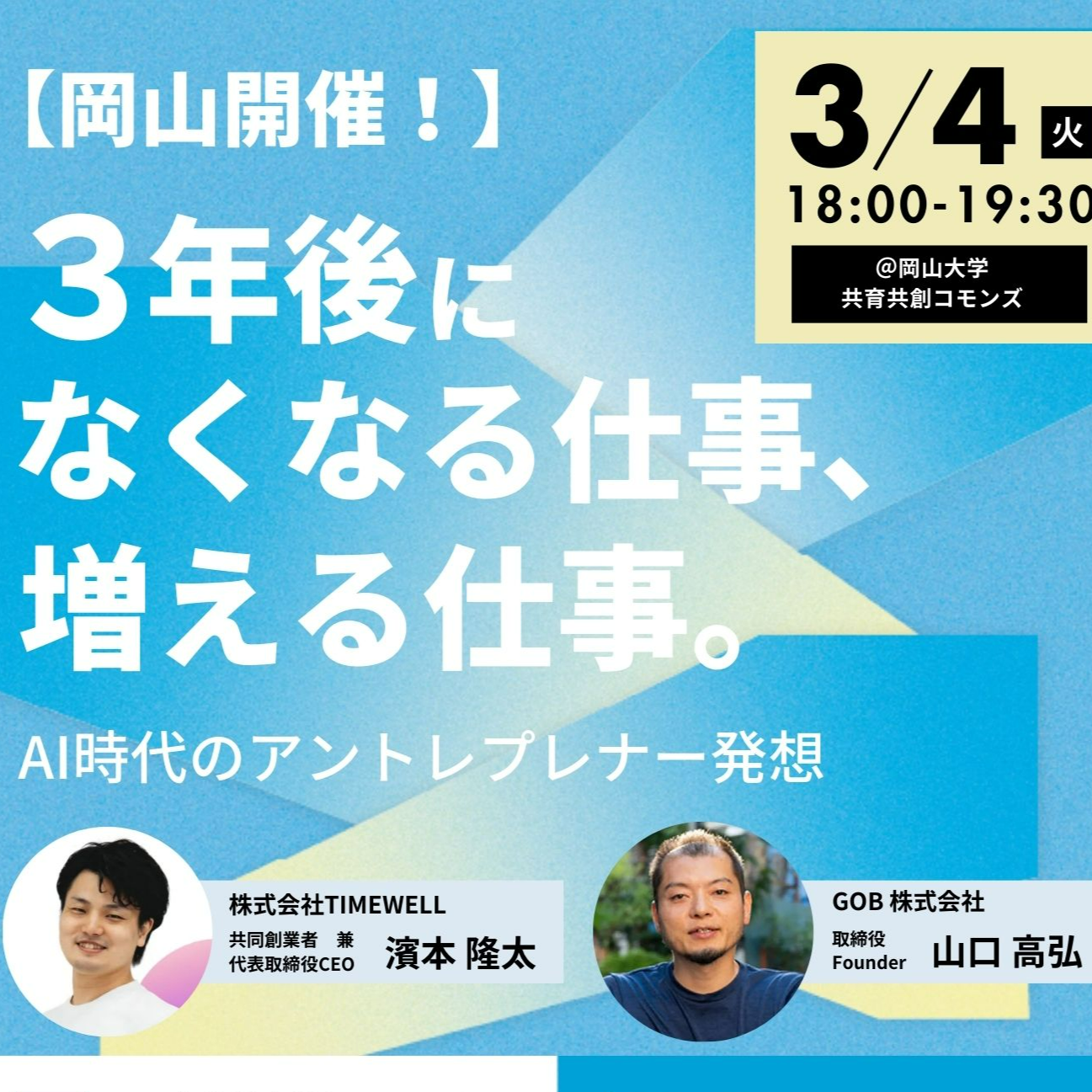 【岡山開催!TIMEWELL×GOB】 3年後になくなる仕事、増える仕事~AI時代のアントレプレナー発想~